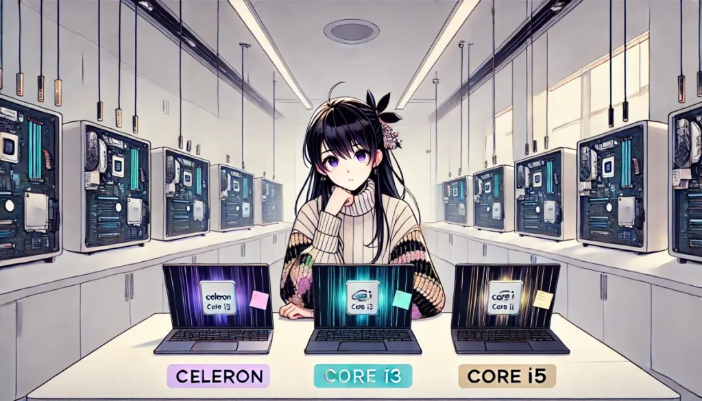 とくに中古モデルだと、CeleronとかCore i3とかCore i5とか…名前がいっぱいあって混乱しちゃう!