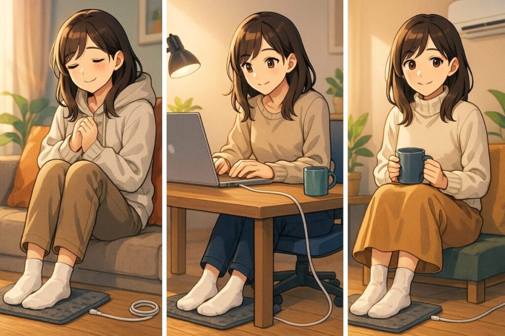 冷え性でも、足元がポカポカだと気分までほぐれるんだよね。
