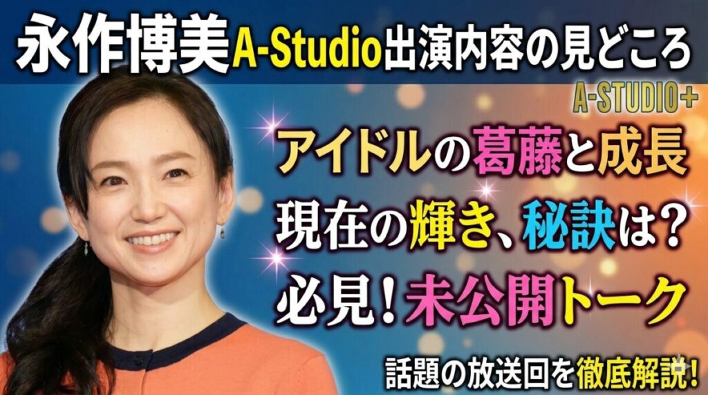 永作博美 A-Studio回は、2026年4月10日放送の「A-Studio+」で、アイドル時代の苦悩から俳優としての転機、今まさに放送中の主演ドラマ現場まで、ぎゅっと詰まった内容になっていたんだよ。