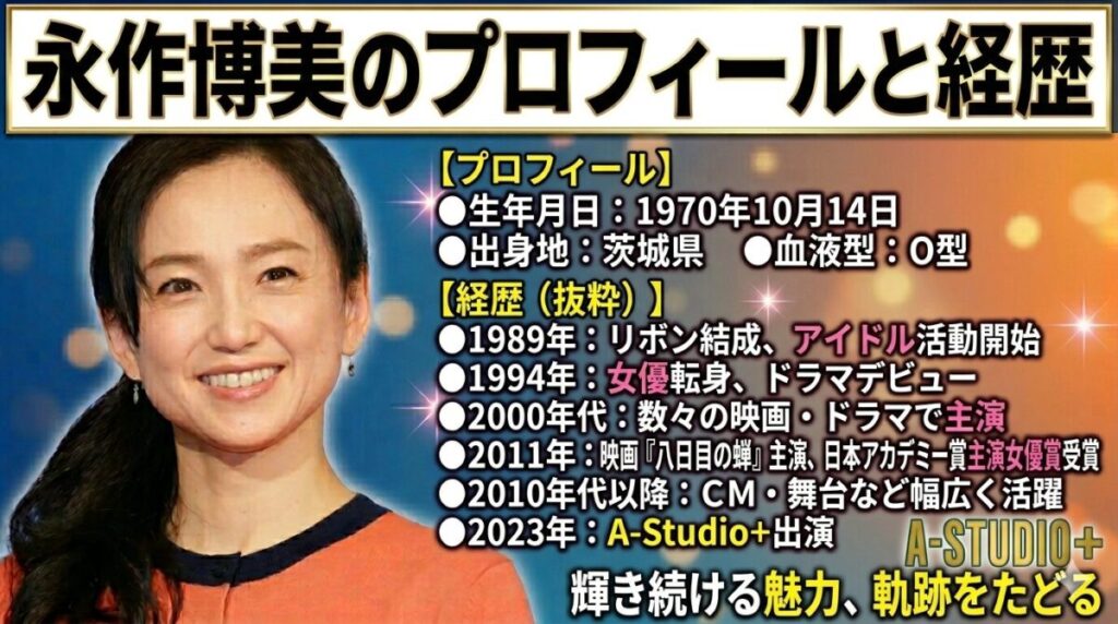 永作博美 A-Studioで興味を持った方にとっては、基本情報やこれまでの歩みをまとめて確認できると、番組内容がもっと深く入ってきます。