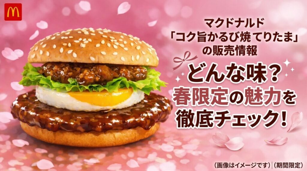 マクドナルド「コク旨かるび焼肉風てりたま」は、2026年3月25日から期間限定で登場するてりたまファミリー第2弾の新作バーガーで、今年のてりたま30周年を彩る一品として打ち出されてるよ。
