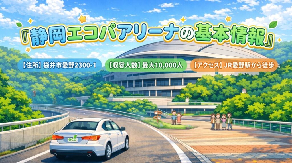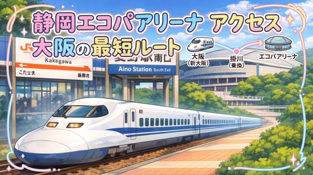 この記事では、静岡エコパアリーナへの大阪からのアクセスについて、新大阪駅からの乗り方、掛川駅での乗り換え、愛野駅から会場までの歩き方、車で向かう場合の注意点まで、ぜんぶまとめて紹介するよ。