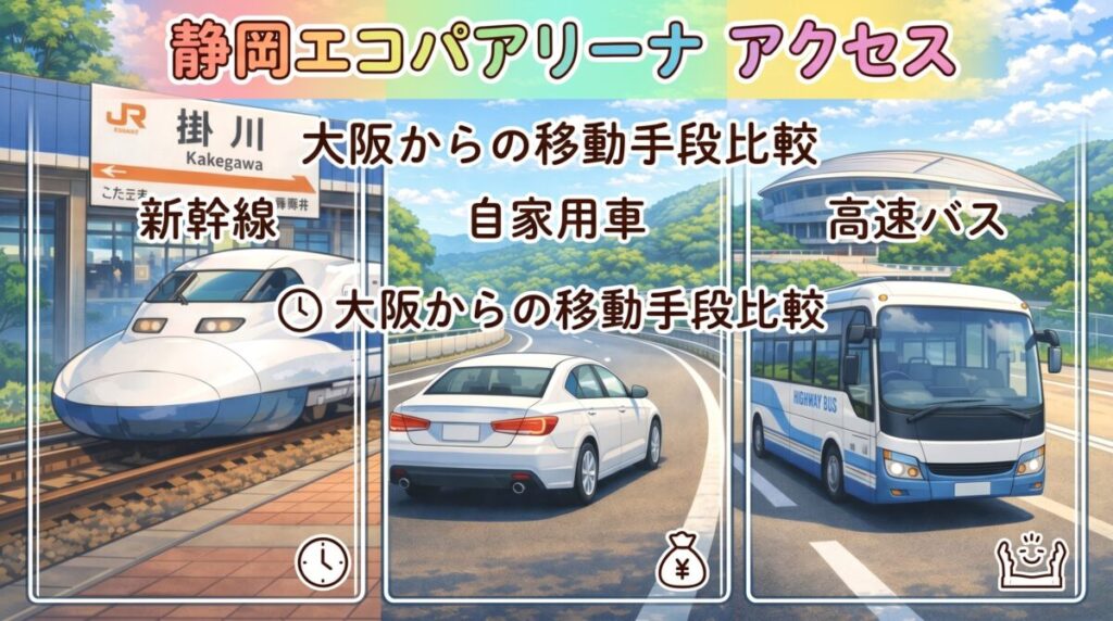 岡エコパアリーナ アクセス 大阪の移動手段比較