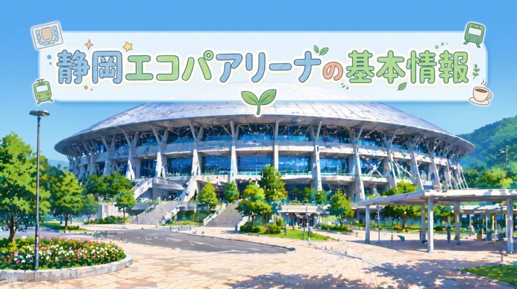 静岡エコパアリーナは静岡県袋井市愛野2300-1にある会場で、東京からは東海道新幹線で掛川駅へ向かい、JR東海道本線で愛野駅まで移動し、徒歩で会場へ進むのが基本の流れだよ。